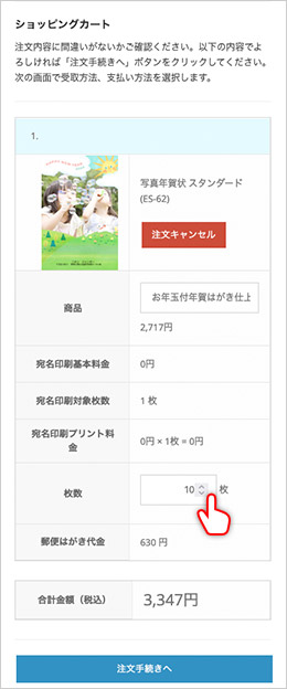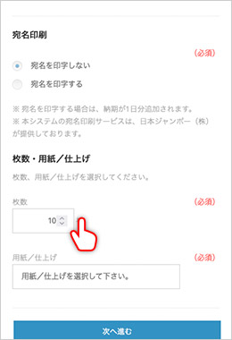 予備用などで宛名印刷をしない仕上がりも必要な方は、その必要な枚数を足した枚数を入力してください。