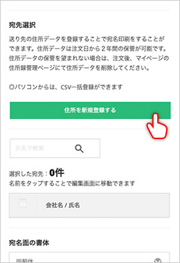 宛先リストに新規に登録場合は「住所を新規登録する」から作成してください。