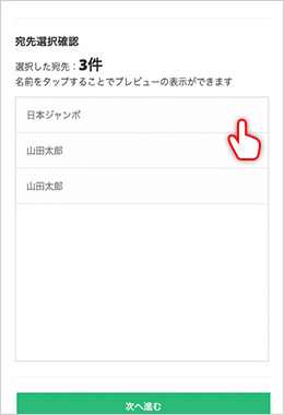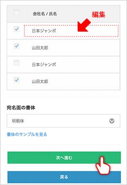 登録済み一覧から、印字するリストににチェックを入れ、次へ進んでください。